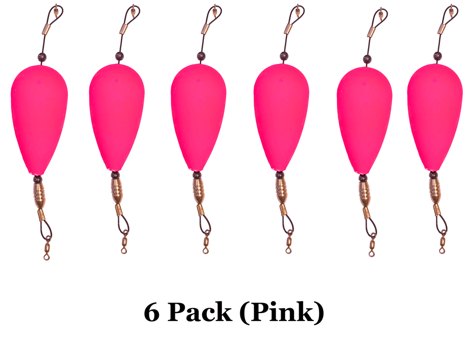 Use our Pink pear bomb popping cork for catching your next big game species of fish.